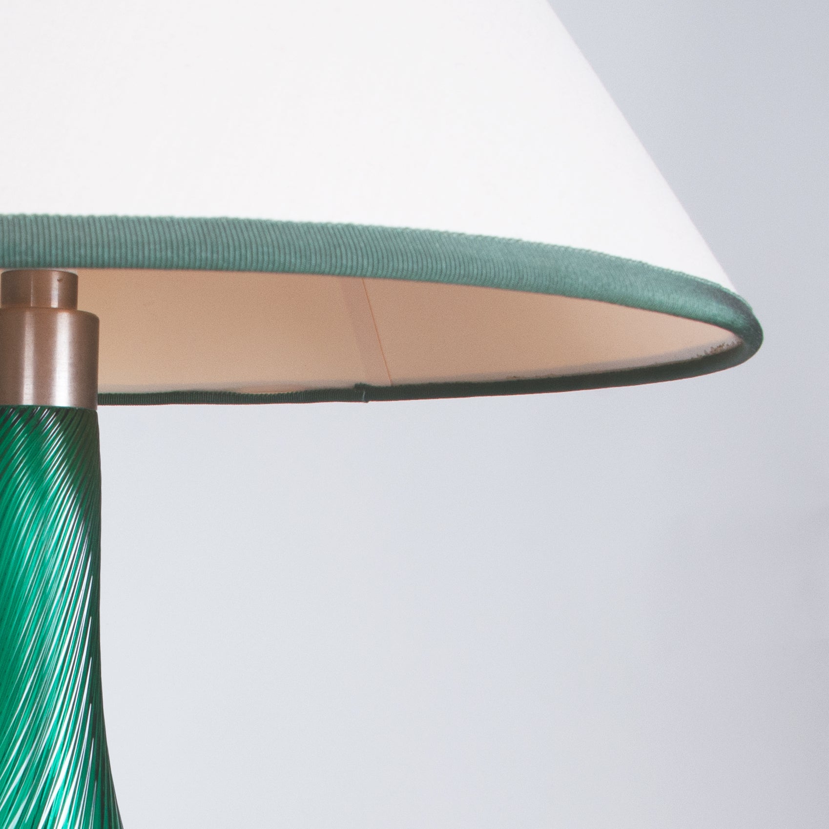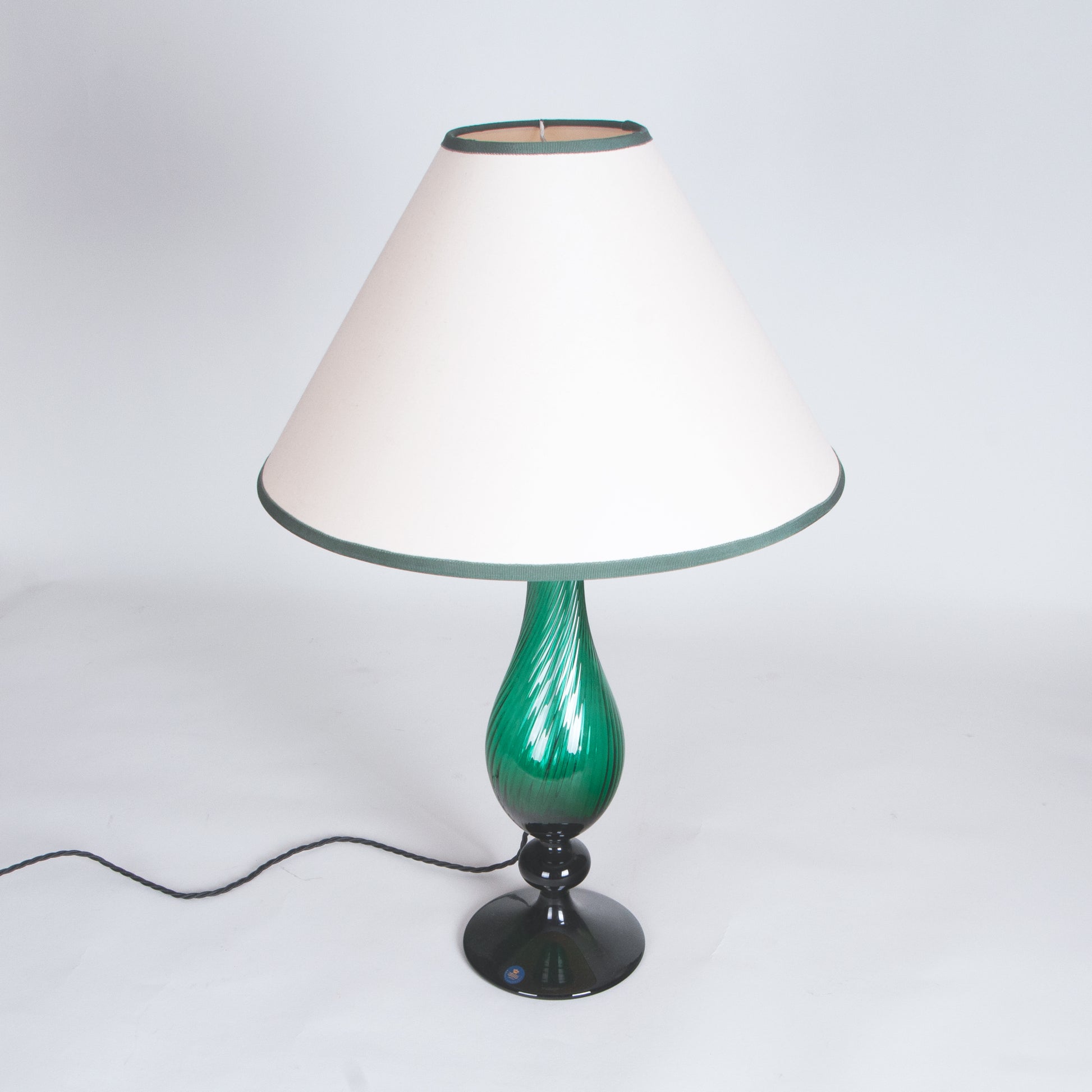 Glass, with the original fabric shade.